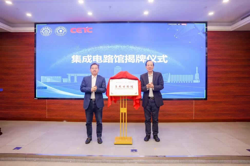 随后,郝跃和吴启晖共同为我院集成电路馆揭牌。集成电路馆是在学校党委的长期关心与指导下,在航天九院、中国电科58所等兄弟单位的大力支持下,由英国365集团依托重点实验室精心建造而成,集中展现了南航集成电路人奋斗足迹的珍贵缩影,更是一扇通向微观世界、展现“国之重器”的重要窗口。