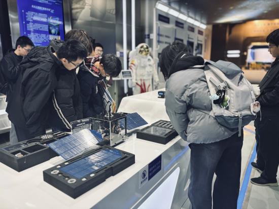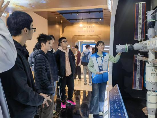 在航天教育教学基地,同学们近距离观摩了鹊桥中继星、高分系列卫星、长征六号运载火箭等航天器模型,系统了解我国航天事业的发展脉络与关键技术突破。每一件展品背后,都凝聚着科研工作者攻坚克难、矢志报国的奋斗历程。同学们不仅感受到航天科技的精密与创新之艰,更深刻体会到南航人“志在长空牧群星”的豪情与担当,航天报国的精神火种在学子们心中悄然点燃。