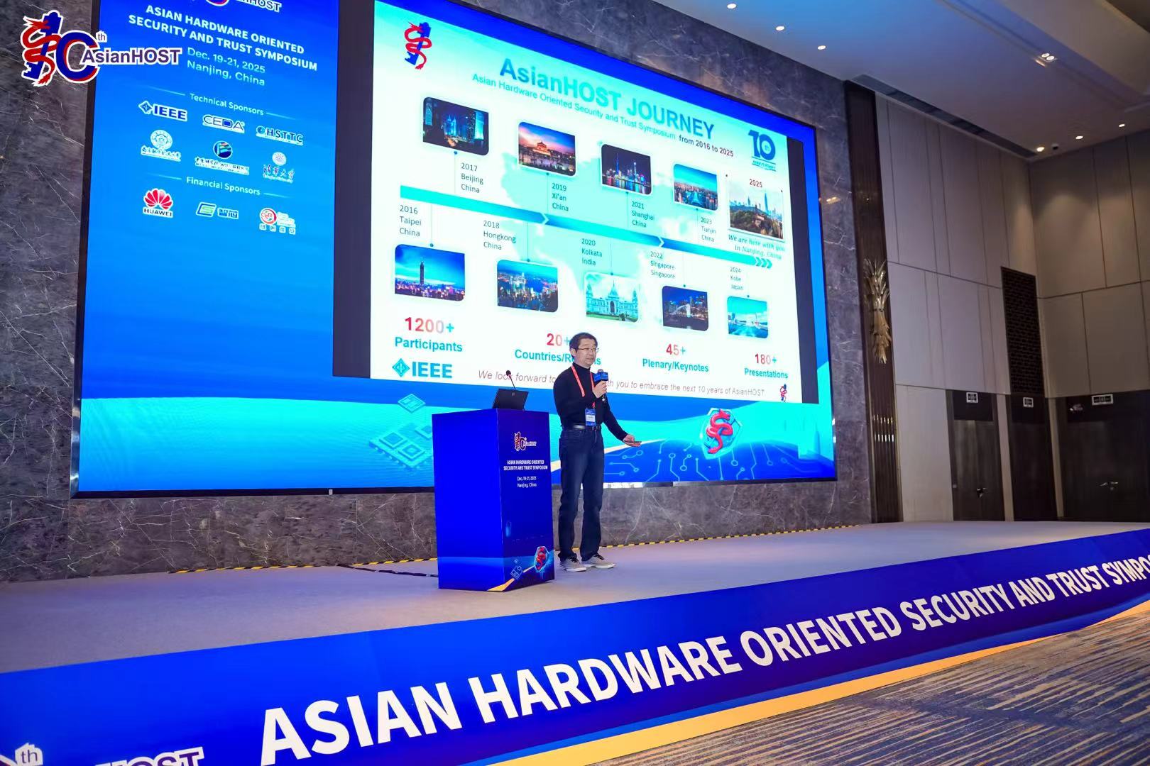2025年12月19日至21日,第十届亚洲硬件安全与可信研讨会(Asian Hardware Oriented Security and Trust Symposium,AsianHOST)在南京成功举办。作为亚洲硬件安全领域的重要学术盛会,AsianHOST致力于促进硬件安全研究与产业发展,搭建国际化的学术交流平台,为全球专家学者分享最新成果、探讨前沿趋势提供了重要契机。